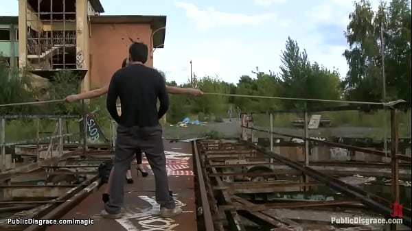 Euro babe bound and fucked in public